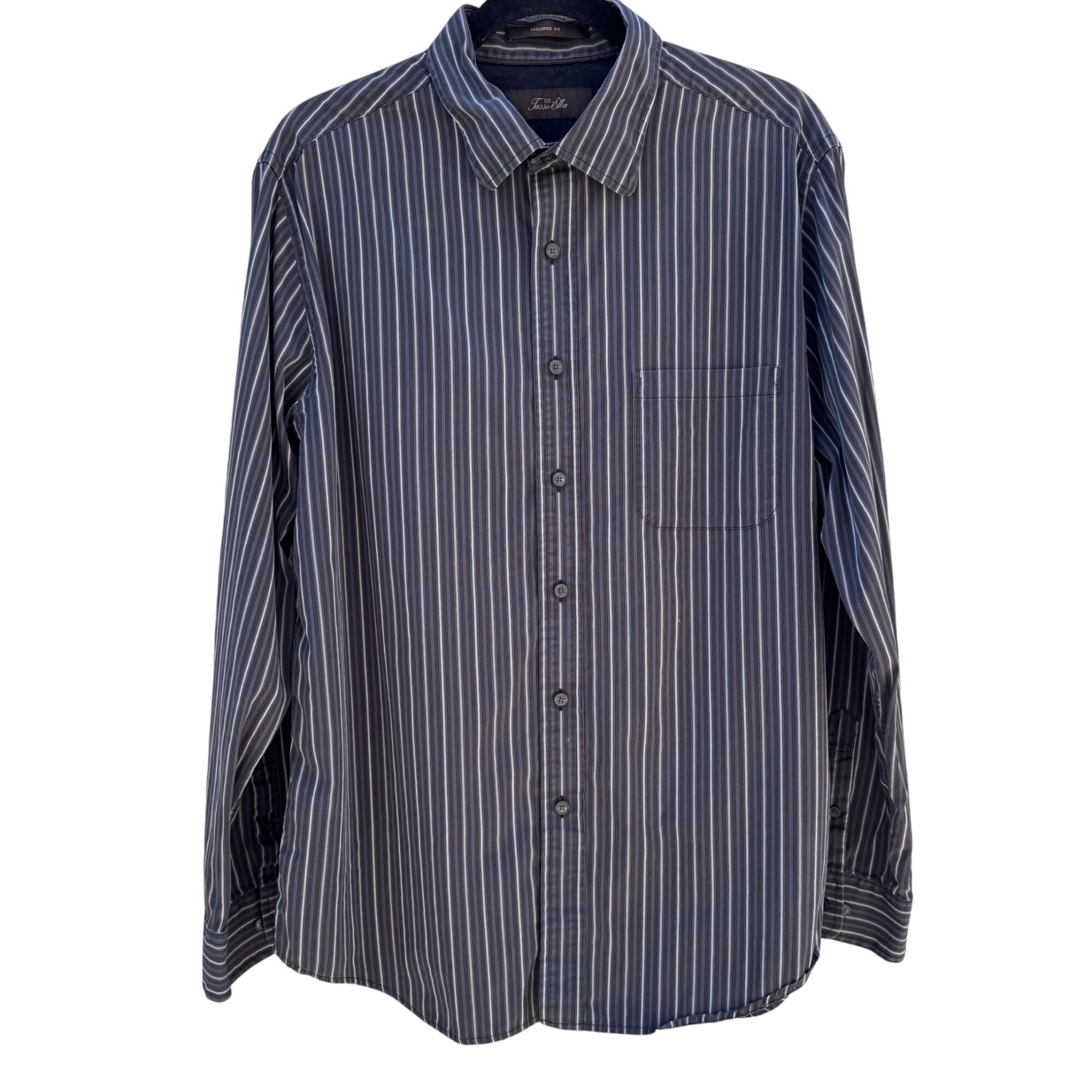 Tasso Elba Mens Tailored Fit Gray White Striped Button-Down Long Sleeve Shirt L