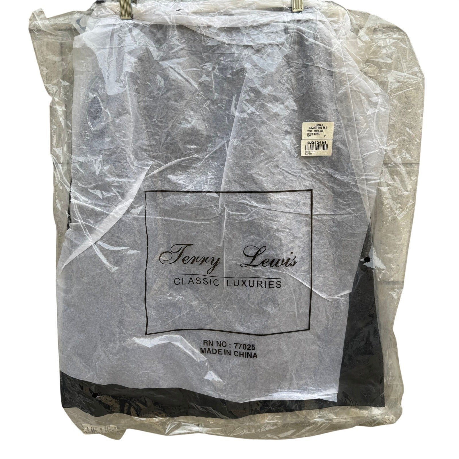 Terry Lewis Classic Luxuries black leather skirt offers a sophisticated and timeless look. Crafted from 100% genuine leather with a smooth lining, this pencil-style skirt features a clean silhouette with a rear elastic waistband for a comfortable fit. The design is accented with subtle whipstitch detailing along the side seams and a back zipper closure with a hook-and-eye. Its midi length and classic paneling make it a versatile staple for professional or evening wear.