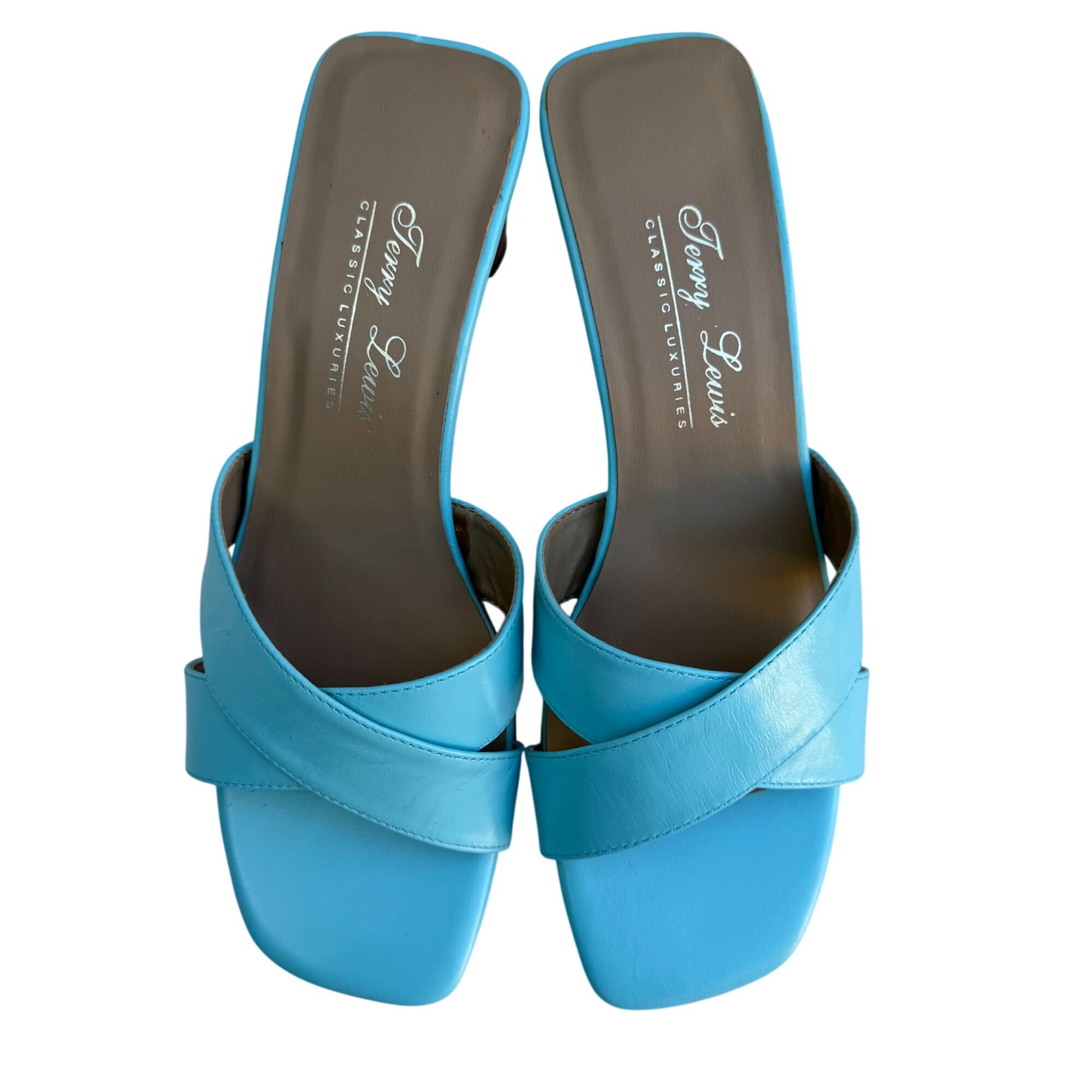 Terry Lewis Classic Luxuries Leather Heeled Sandals 5.5M Light Blue New With Box