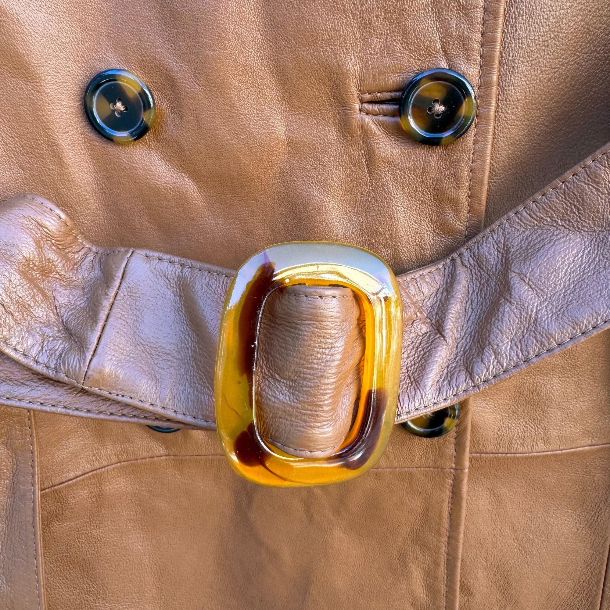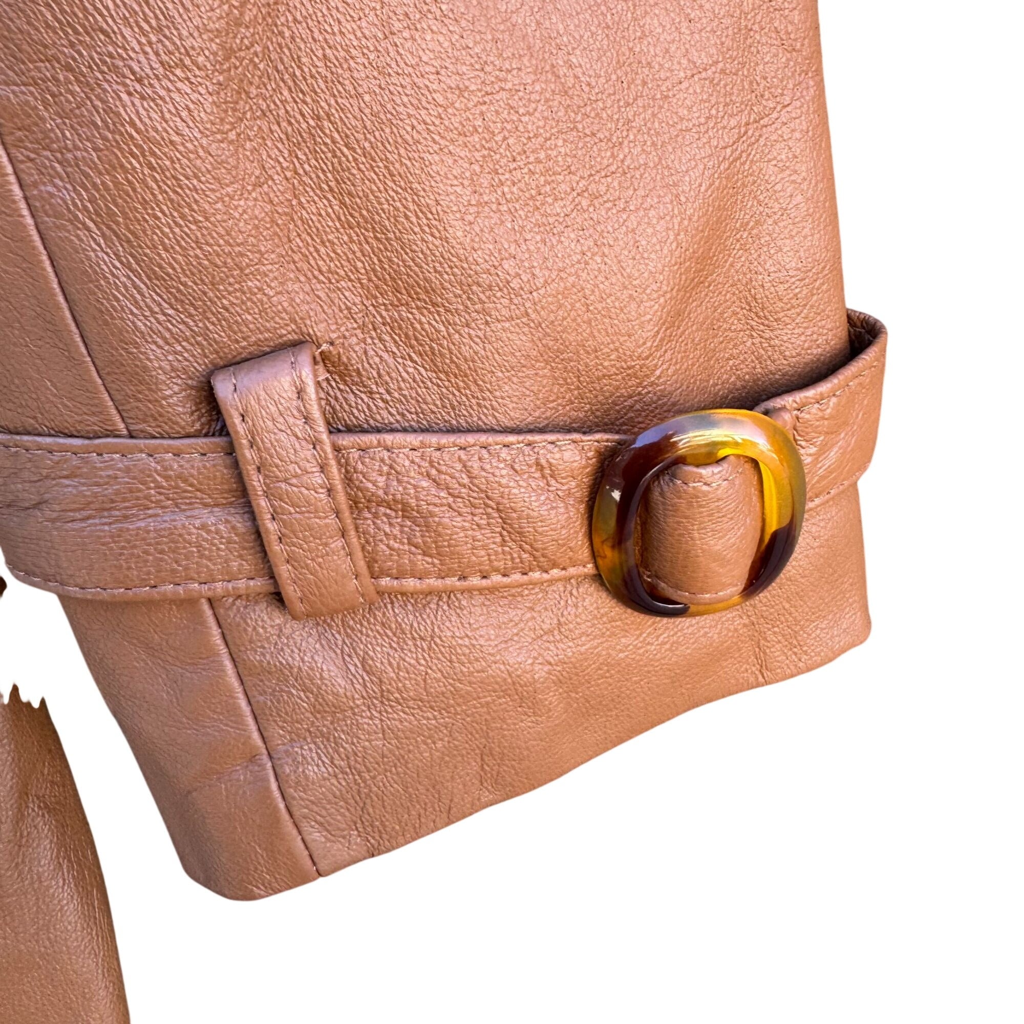 Terry Lewis Vintage Womens Leather Brown Double-Breasted Belted Trench Coat S