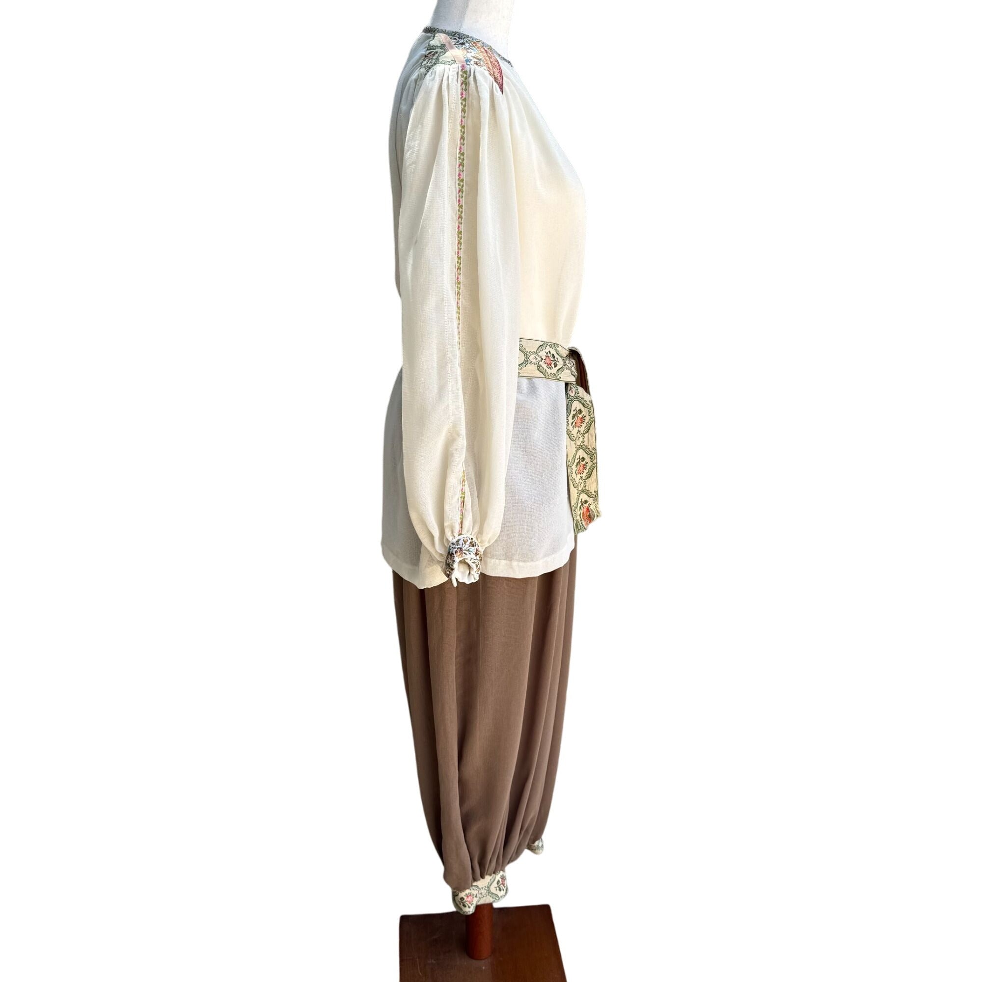 The French Clique Vintage 70s Silk Embroidered Blouse Belt Harem Palazzo Pants 4