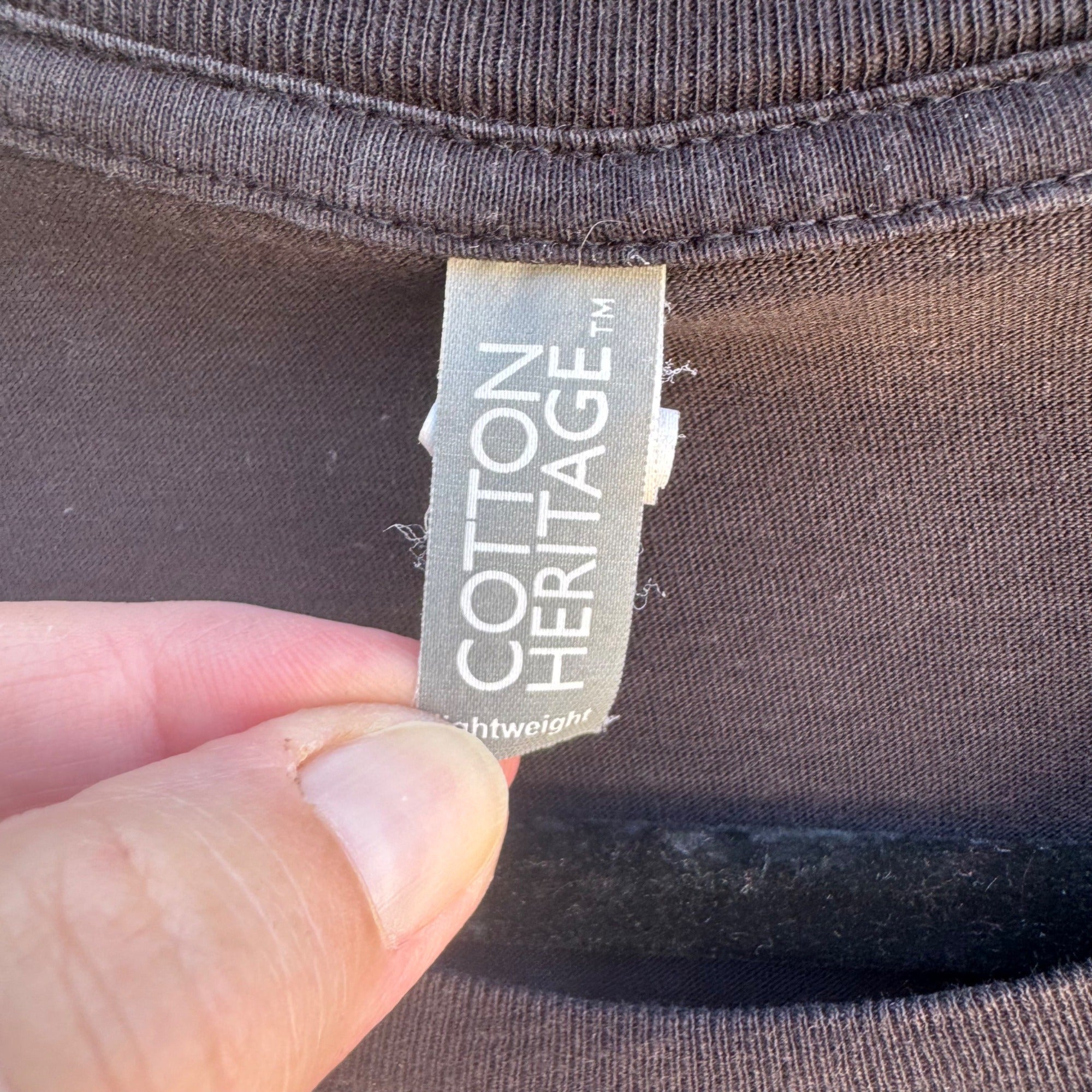 This Cotton Heritage lightweight T-shirt features bold yellow gothic lettering on the front and back. Made from breathable 100% cotton, ideal for lasting comfort.