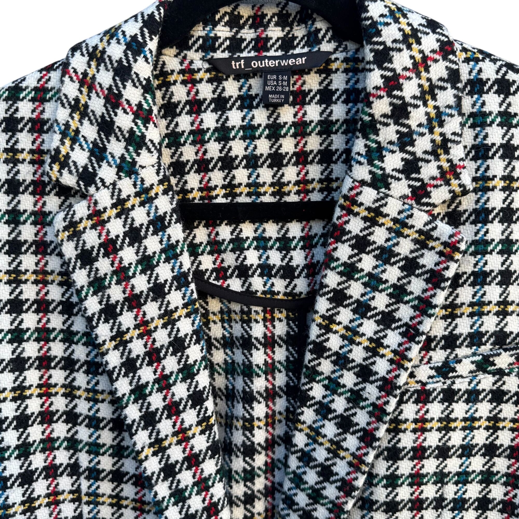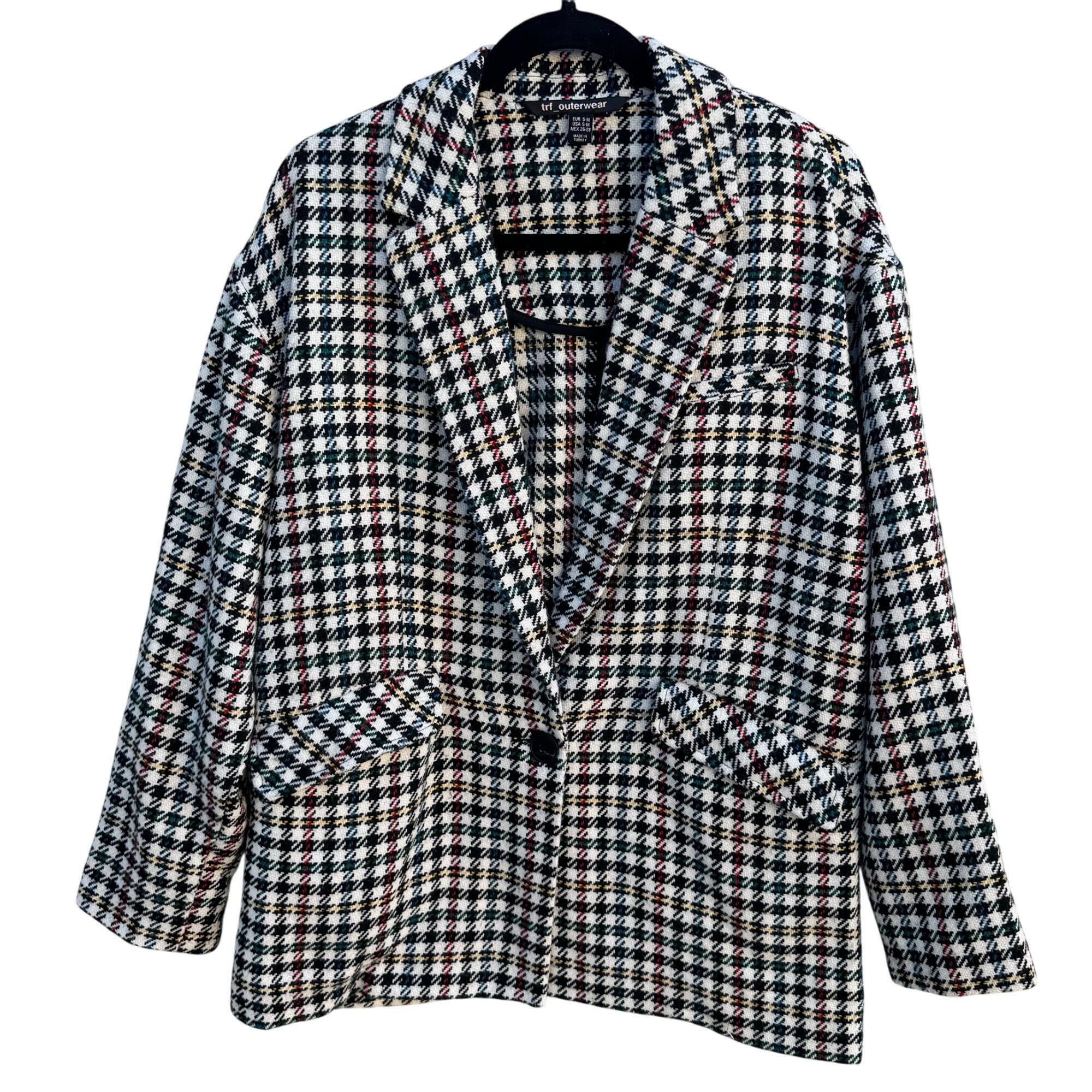 Trf Outerwear Zara Vintage-Style Plaid Blazer Coat S-M Houndstooth Wool Blend