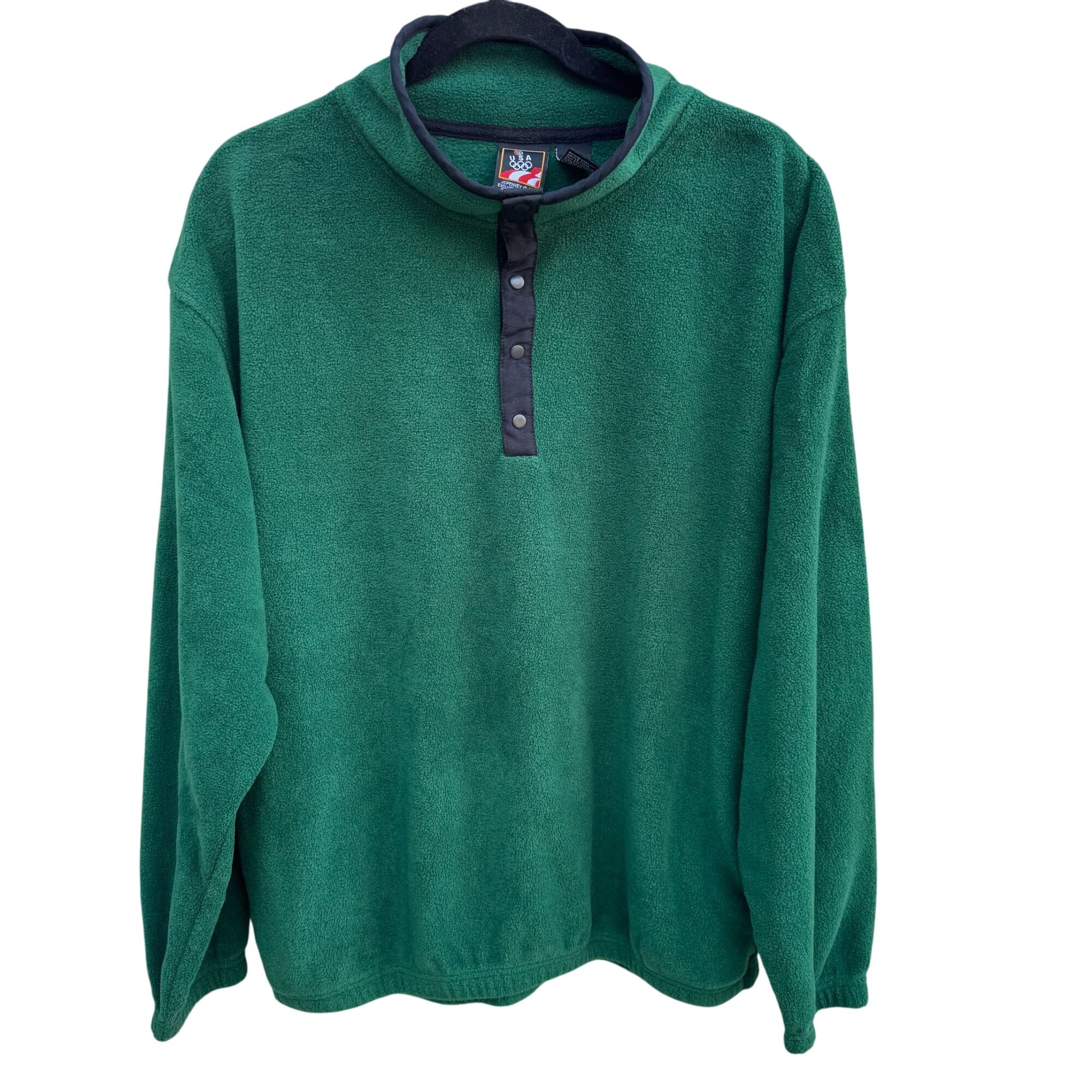 USA Olympics JC Penney Unisex Green High Collar 1/4 Button Fleece Pullover L/G
