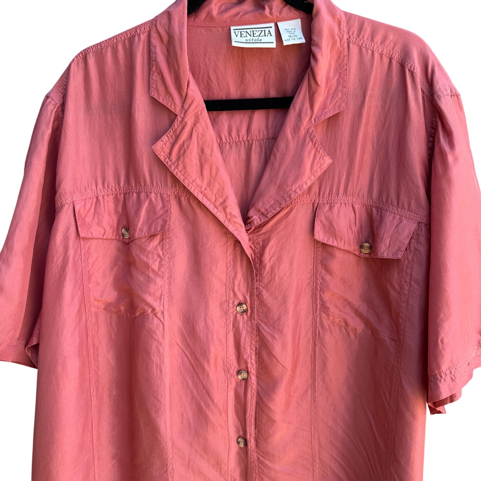 Venezia Vitale Womens Silk Dusty Rose Short Sleeve Button-Up Shirt Size 18/20