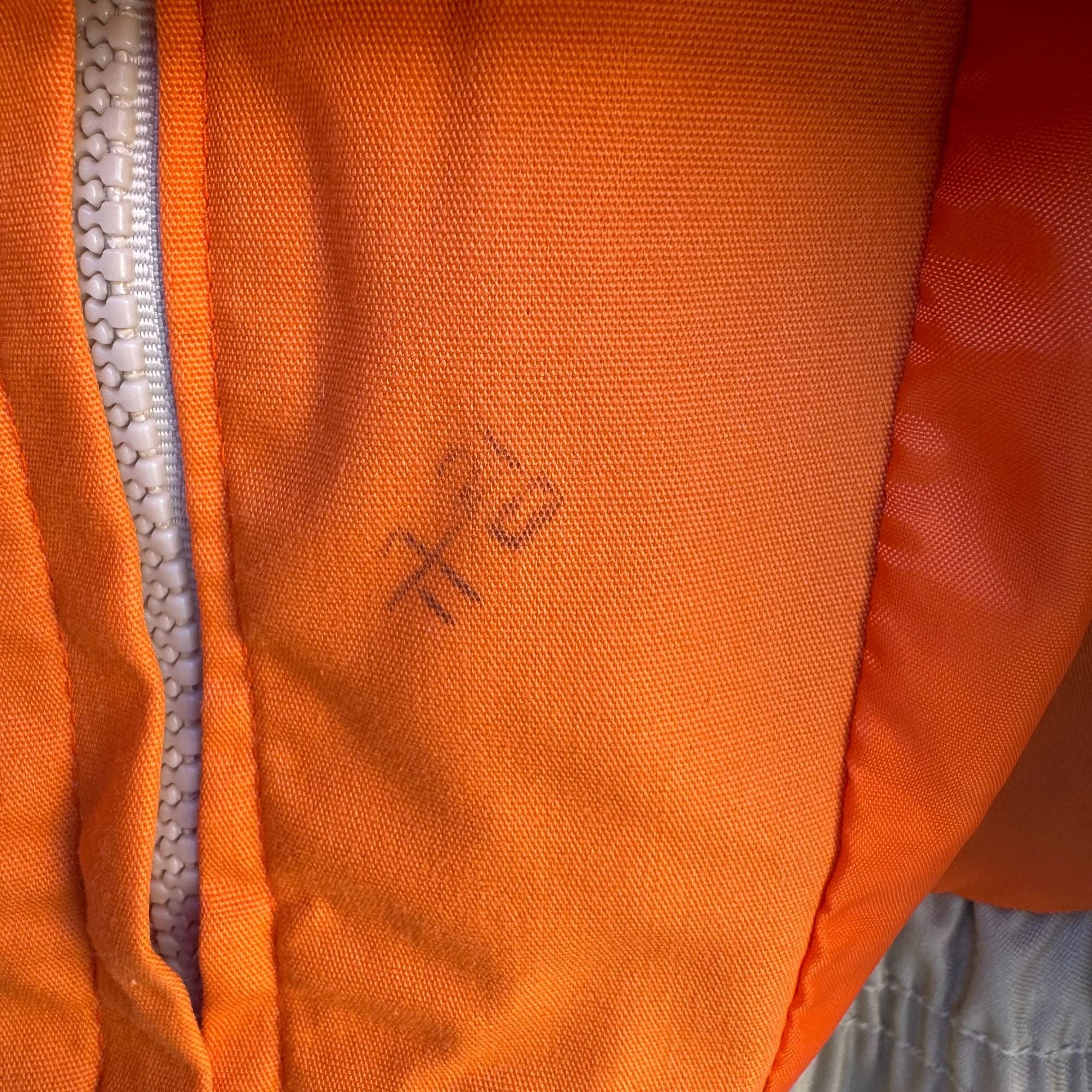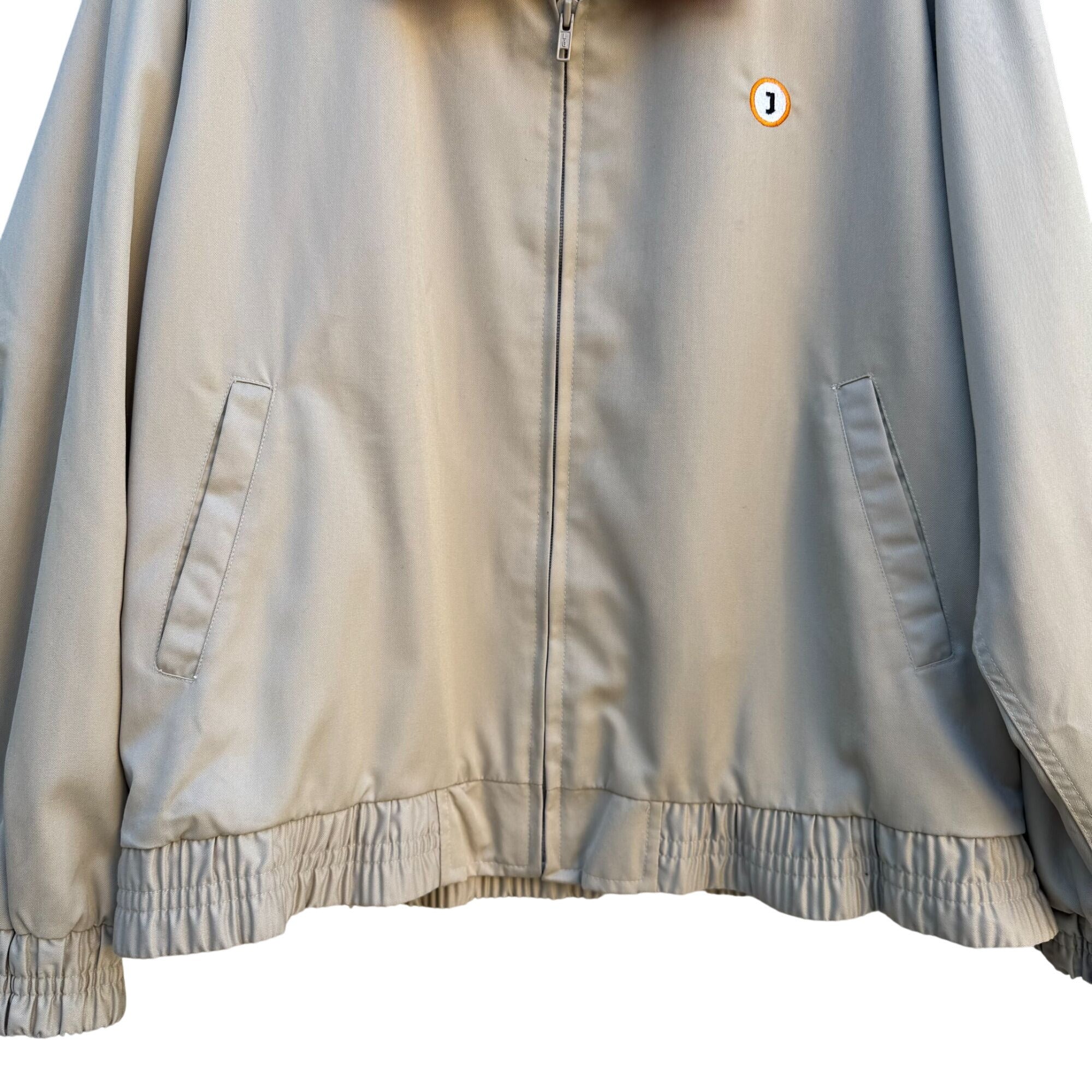Vintage 70s Mens Beige Orange Flight Bomber Jacket Embroidered Zip Elastic Hem