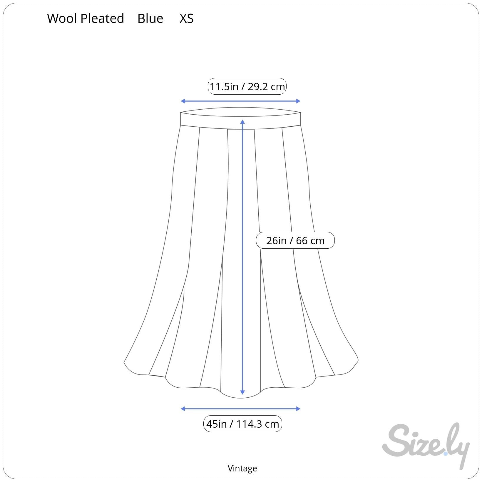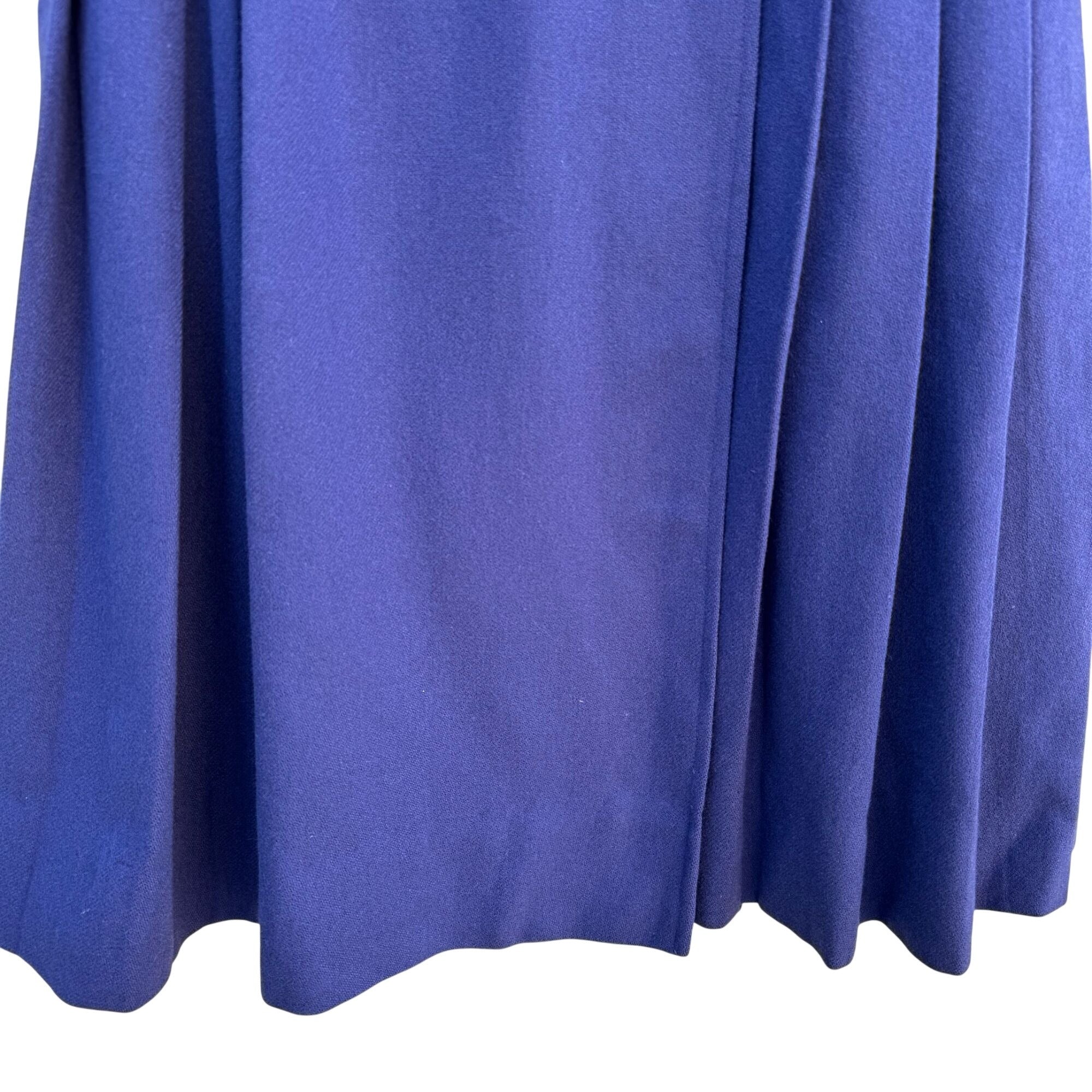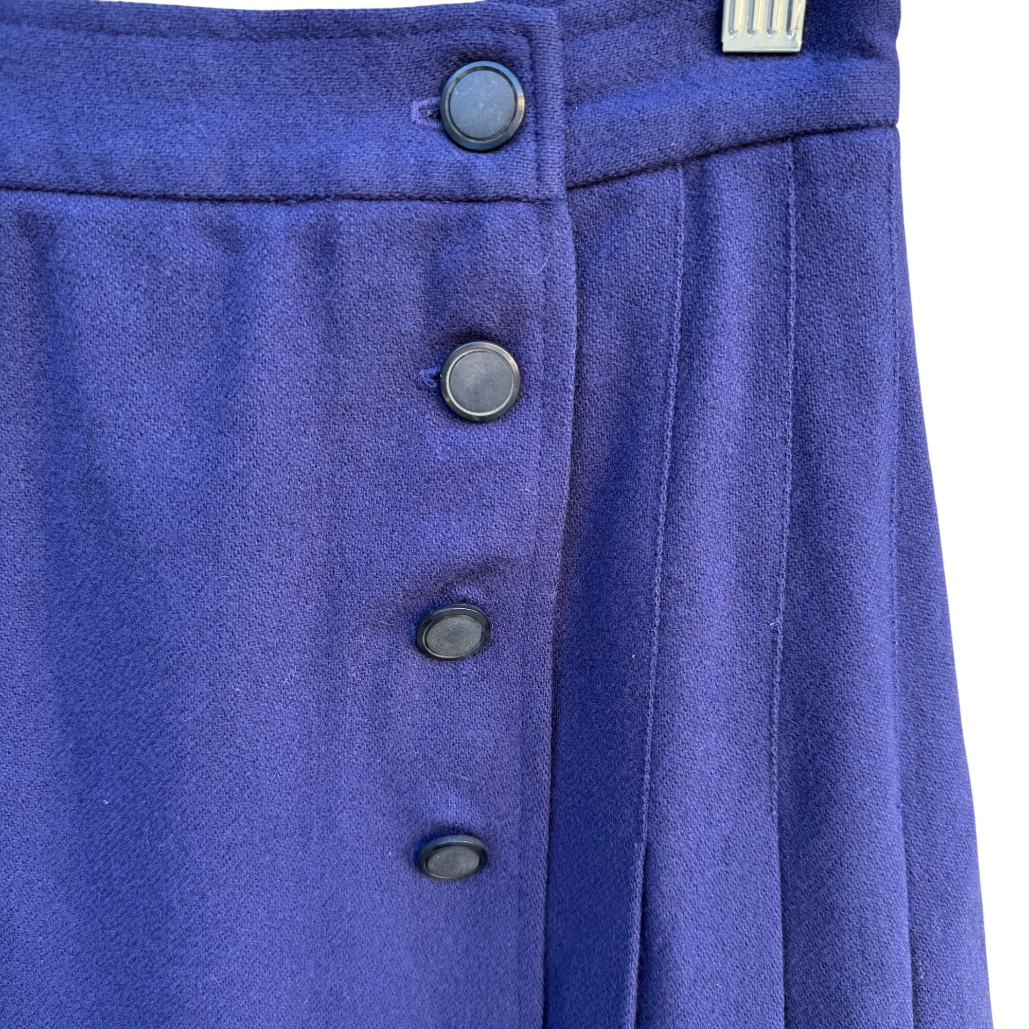 Vintage 70s Womens Blue Side Button Pleated Wool Midi Skirt Preppy Professional