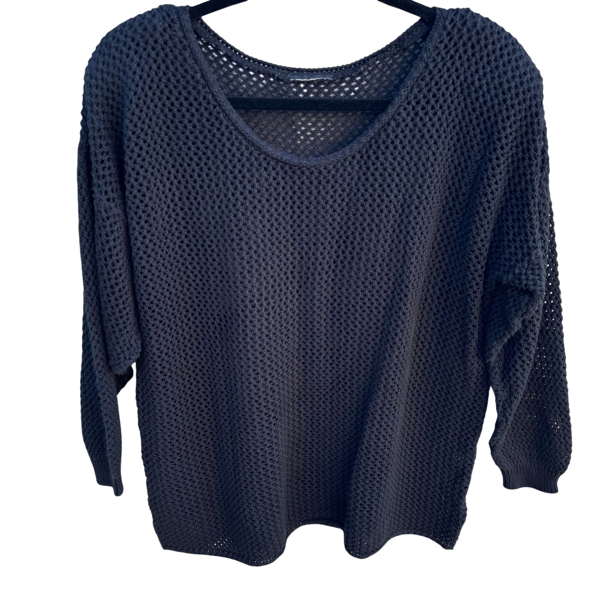Vintage 80s Oversized Womens Black Goth Alternative Knit Sweater Top Fishnet L