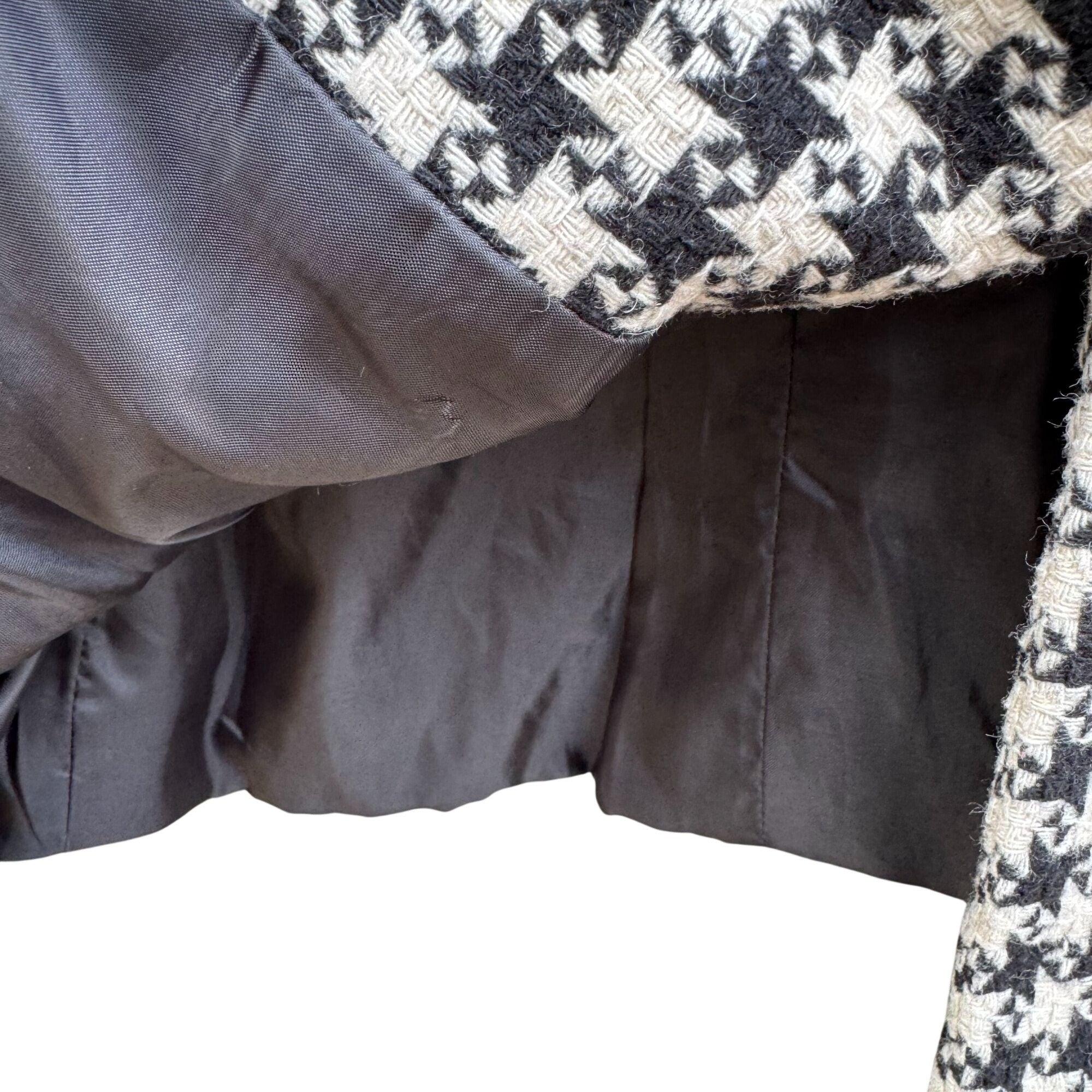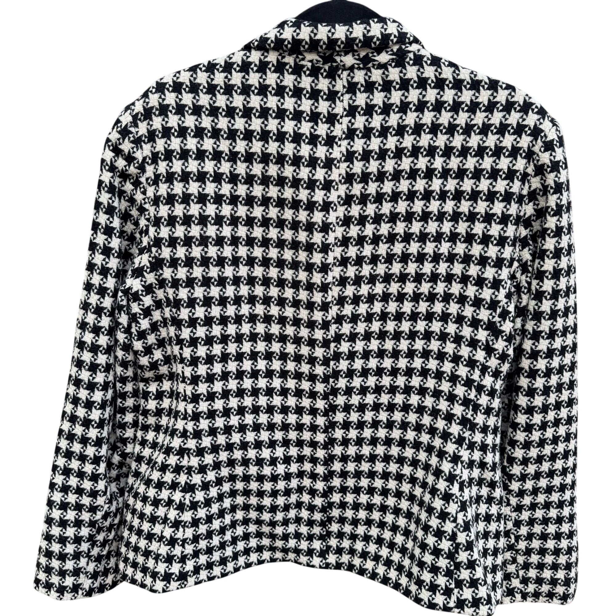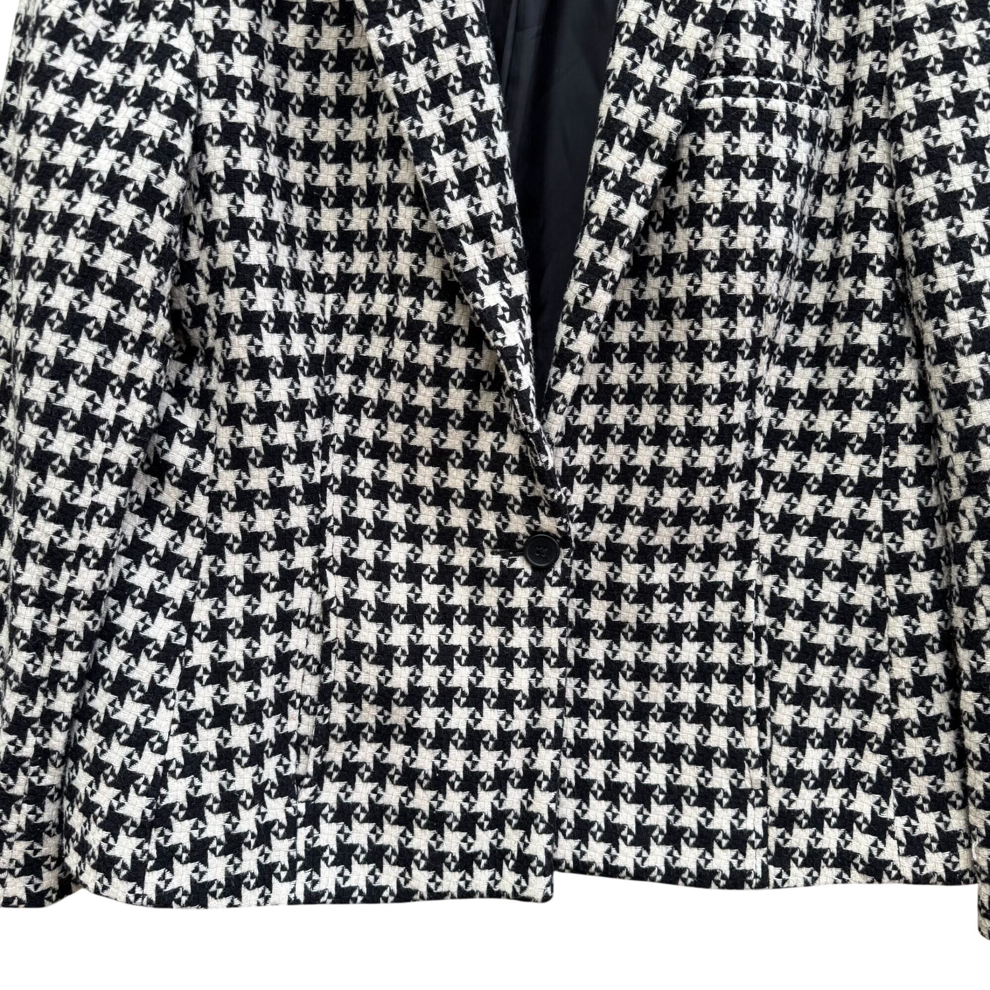Vintage Houndstooth Womens Wool Blazer Single Breasted Pockets Old Money Preppy