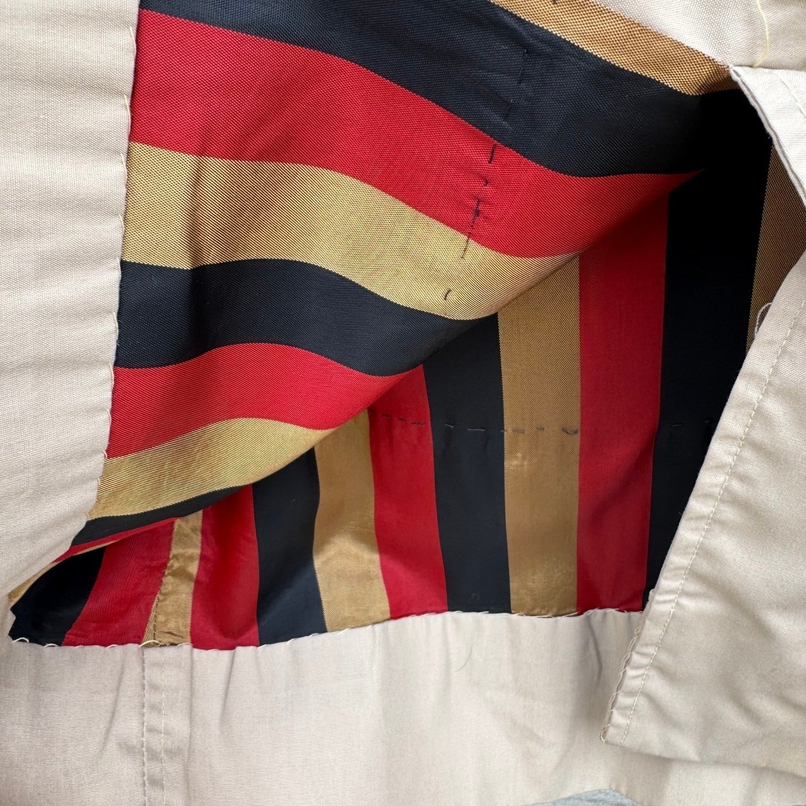 Vintage Khaki Trench Coat Mens Overcoat Hidden Button Striped Lining Mid Length