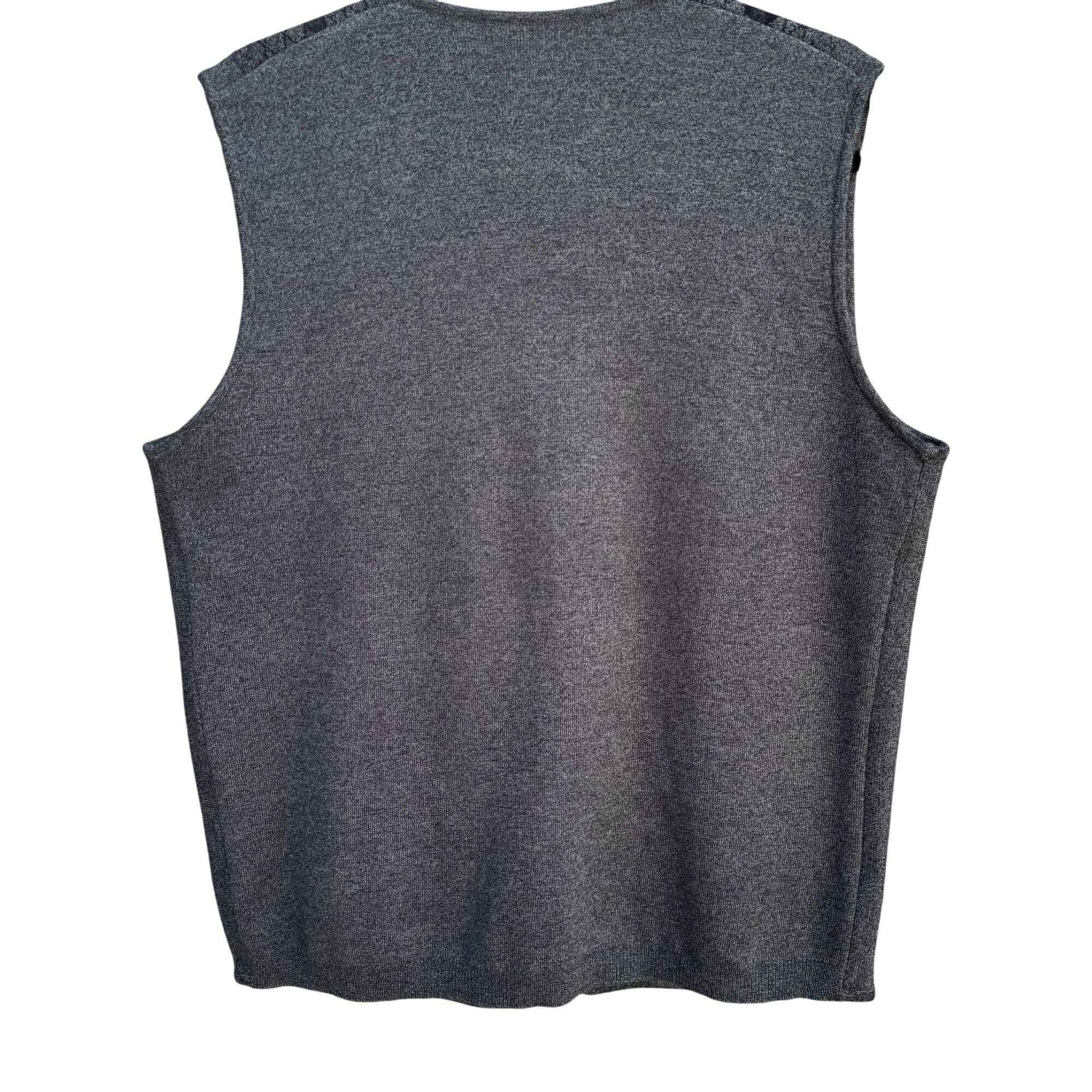 Vintage Mens Gray Argyle Button-Up Pockets Old Money Preppy Knit Grandpa Vest