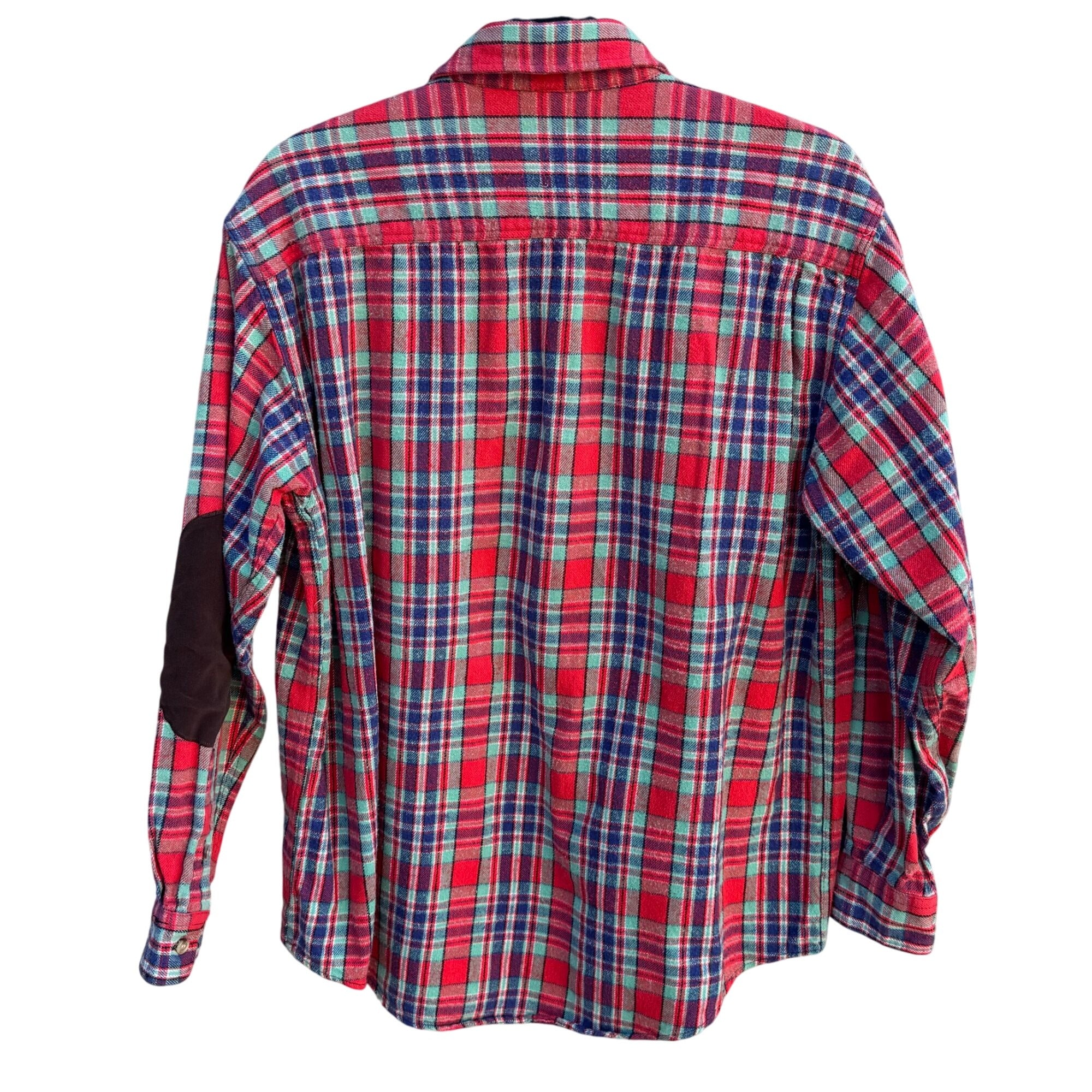 Vintage Mens United Garment Genuine Houston Plaid Button-Up Shirt Elbow Patches