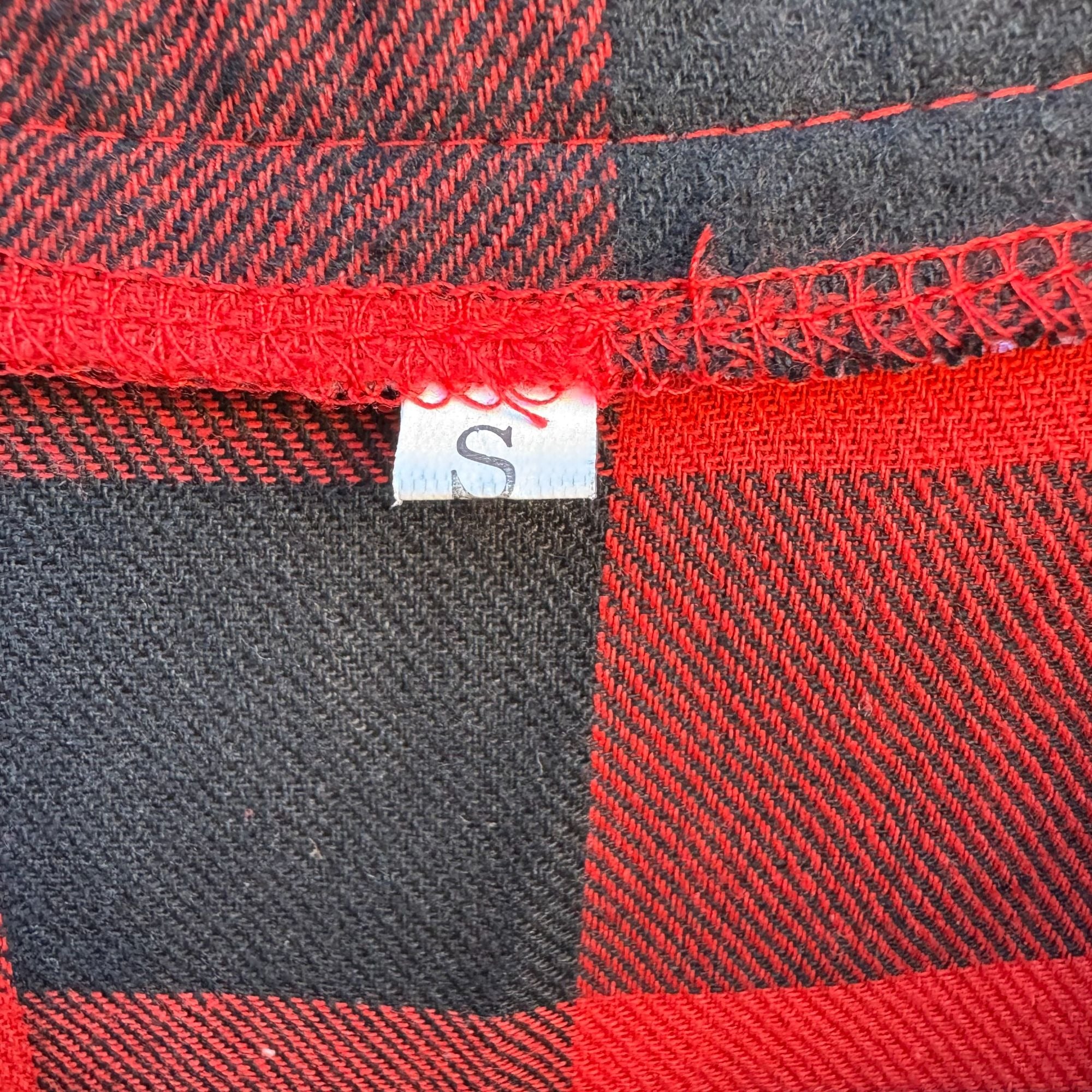 Vintage Red Black Buffalo Plaid Womens V Neck 3/4 Roll Tab Sleeve Work Shirt S