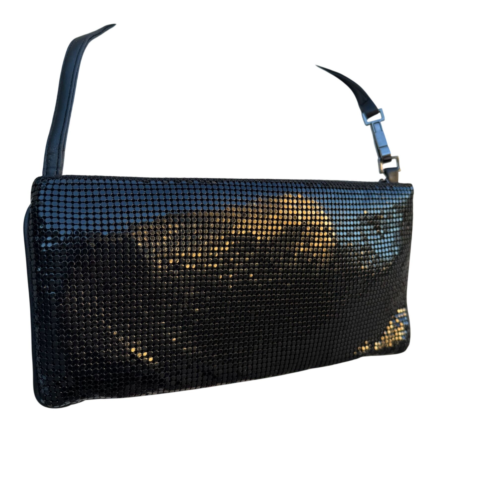 Whiting & Davis Vintage Womens Black Metallic Mesh Evening Bag Party Glam Formal